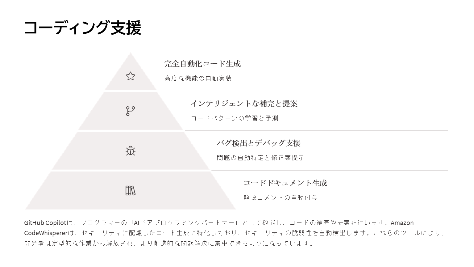以下の例は、プレゼンテーションの生成に特化したAIサービスの「Gamma(ガンマ)」を使って作ったものになります。