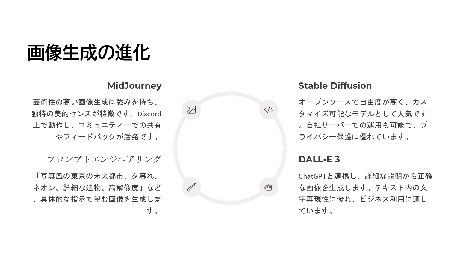 今回はGamma(ガンマ)のみで作ってみましたが、ChatGPT(チャットGPT)など「推論」が得意なAIと組み合わせることで、より高度で魅力的なプレゼンテーションになるでしょう。